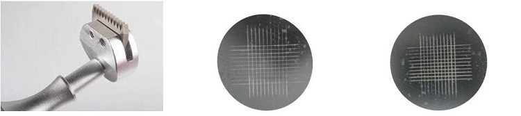 This method specifies a procedure to determine the adhesion of the paint to the support, of the paints to detachment from the supports when a pattern is created on the surface, up to the support. The test consists in making an incision on the coating with an appropriate cutter or metal blade, reaching the substrate. Create horizontal and vertical incisions to shape the reticle on the test surface. Apply adhesive tape to cover the incision area and remove vigorously. Visually observe the grid area to determine the result.