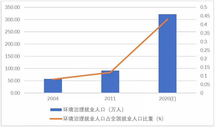 2020年全國環境治理營業收入總額與國內生產總值(GDP)的比值為1.9%,較2011年增長1.14個百分點,對國民經濟直接貢獻率為4.5%,較2011年增長3.35個百分點。生態環保產業從業人員約320萬人,占全國就業人員總數的0.43%,比2011年提升0.31個百分點。預計2021年環境治理營業收入規模約達2.2萬億元?!笆奈濉逼陂g將保持10%左右的復合增速,2025年,環境治理營業收入有望突破3萬億元。