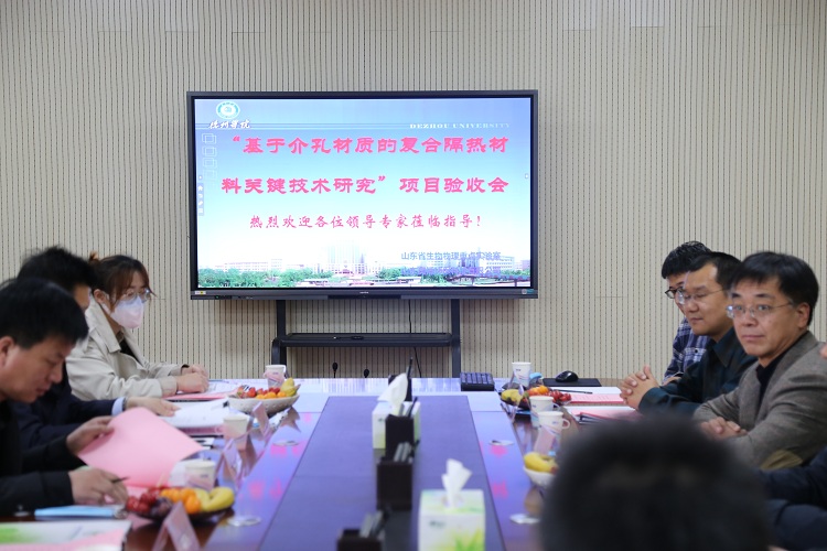 2022年4月28日,在德州學院生物物理研究院啟智樓三樓會議室,山東奧博環??萍加邢薰疚械轮輰W院進行的橫向科研項目“基于介孔材質的復合隔熱材料關鍵技術研究”課題驗收會議順利召開。德州學院李永平副校長;武城縣科技服務中心黨組書記范忠新主任、山東奧博環??萍加邢薰究偨浝韽堁忧喔呒壒こ處熂捌髽I技術人員等15余人參加了課題驗收會議。